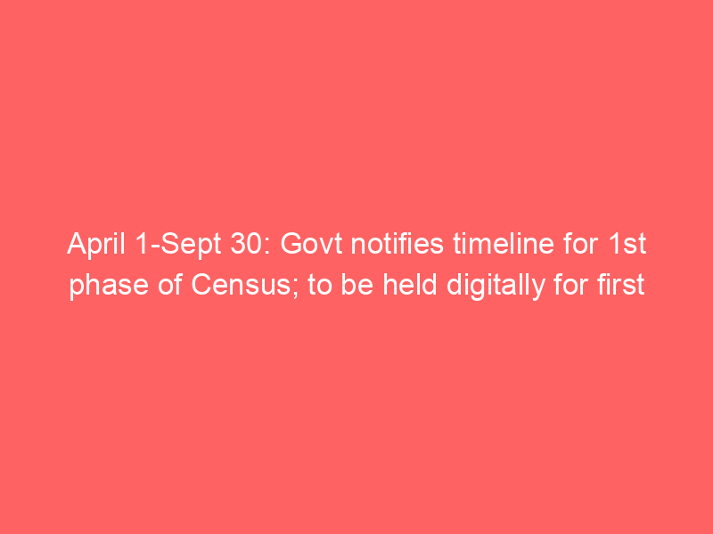 April 1-Sept 30: Govt notifies timeline for 1st phase of Census; to be held digitally for first time​​
