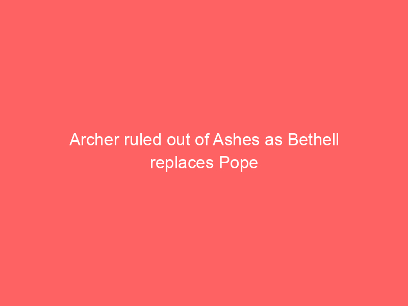 Archer ruled out of Ashes as Bethell replaces PopeUncategorized England pace bowler Jofra Archer is ruled out of the remainder of the Ashes series with a side strain, while England drop former vice-captain Ollie Pope for the fourth Test in Melbourne.