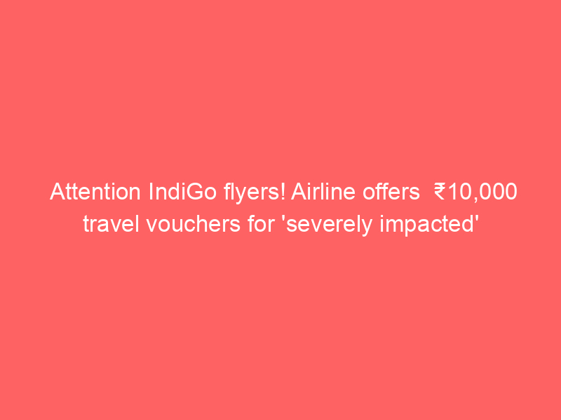 Attention IndiGo flyers! Airline offers ₹10,000 travel vouchers for ‘severely impacted’ customers – check detailsUncategorized The domestic carrier said that the vouchers can be used for any future IndiGo travel and is valid for the next 12 months.