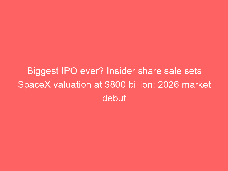 Biggest IPO ever? Insider share sale sets SpaceX valuation at $800 billion; 2026 market debut possible