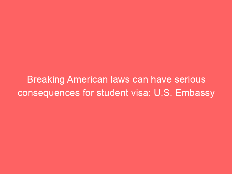 Breaking American laws can have serious consequences for student visa: U.S. EmbassyWorld The U.S. Embassy, in a post on X, said a U.S. visa is a privilege and not a right