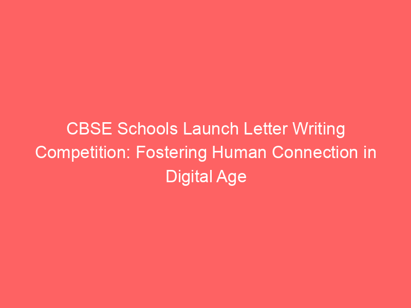 CBSE schools are organizing a letter-writing competition for students to highlight the importance of human connections in our digital age. This initiative, part of the Universal Postal Union’s annual contest, encourages reflection on emotional bonds and meaningful communication.