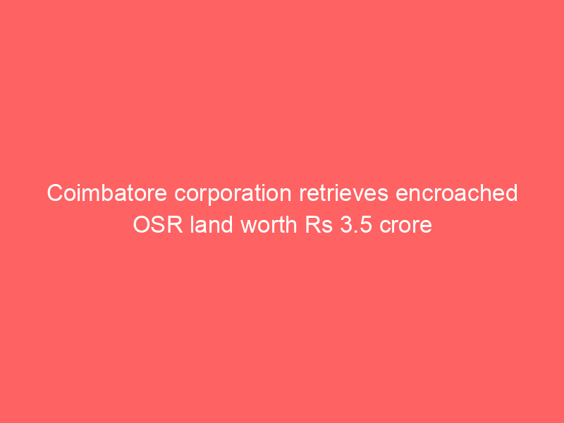 Coimbatore corporation retrieves encroached OSR land worth Rs 3.5 croreUncategorizedCoimbatore corporation retrieves encroached OSR land worth Rs 3.5 crore