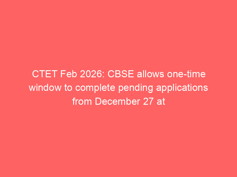 CBSE has announced a one-time application completion window for candidates with incomplete CTET February 2026 registrations. The special facility will be available on ctet.nic.in from December 27 to December 30, 2025. Out of over 25 lakh applicants, more than 1.61 lakh registrations remained incomplete. CBSE stated that no fresh registrations will be allowed and candidates must verify and correct details carefully, as no further correction opportunities will be provided.
