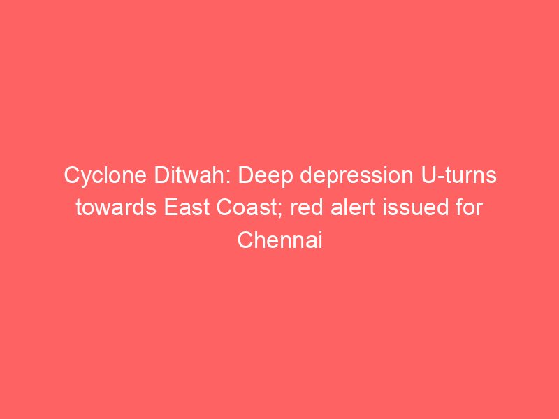 A deep depression, a remnant of Cyclone Ditwah, has turned back towards the east coast, prompting a red alert for Chennai and neighboring districts. Extremely heavy rainfall is expected in northern Tamil Nadu. The system is currently very close to the coast and is forecast to weaken before making landfall south of Chennai.
