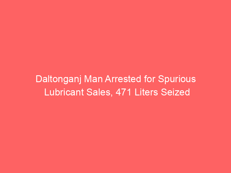 Police in Daltonganj arrested Khurshid Alam from Islamnagar for allegedly selling spurious automotive lubricants. Authorities seized 471 liters of the counterfeit product from his garage, Aman Automobile. Alam reportedly received supplies from a Kolkata resident, and further investigation is ongoing.
