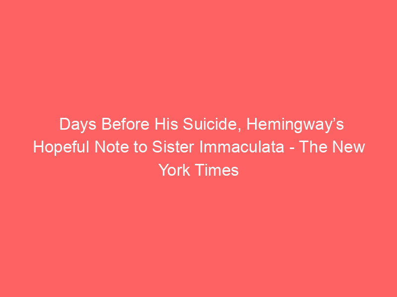 Days Before His Suicide, Hemingway’s Hopeful Note to Sister Immaculata  The New York Times