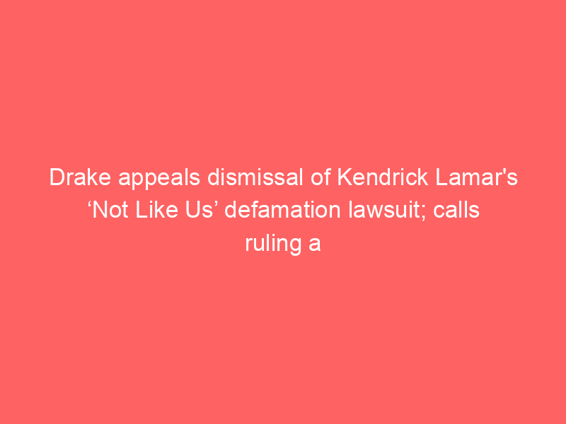Drake appeals dismissal of Kendrick Lamar’s ‘Not Like Us’ defamation lawsuit; calls ruling a ‘dangerous’ rule for rap