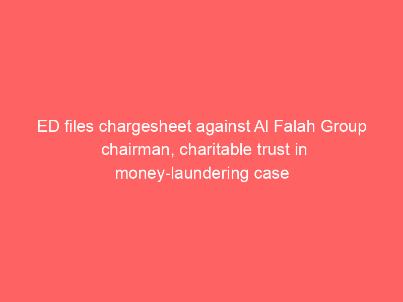 ED files chargesheet against Al Falah Group chairman, charitable trust in money-laundering caseUncategorized The Enforcement Directorate has filed a chargesheet before a Delhi court against Jawad Ahmad Siddiqui, Chairman of the Al Falah Group, in connection with an alleged money-laundering case.