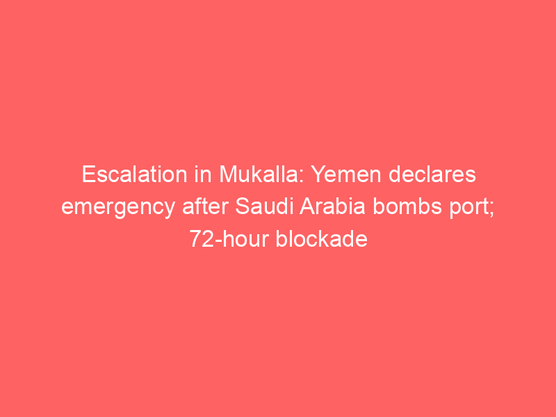 Escalation in Mukalla: Yemen declares emergency after Saudi Arabia bombs port; 72-hour blockade imposedUncategorized Escalation in Mukalla: Yemen declares emergency after Saudi Arabia bombs port; 72-hour blockade imposed