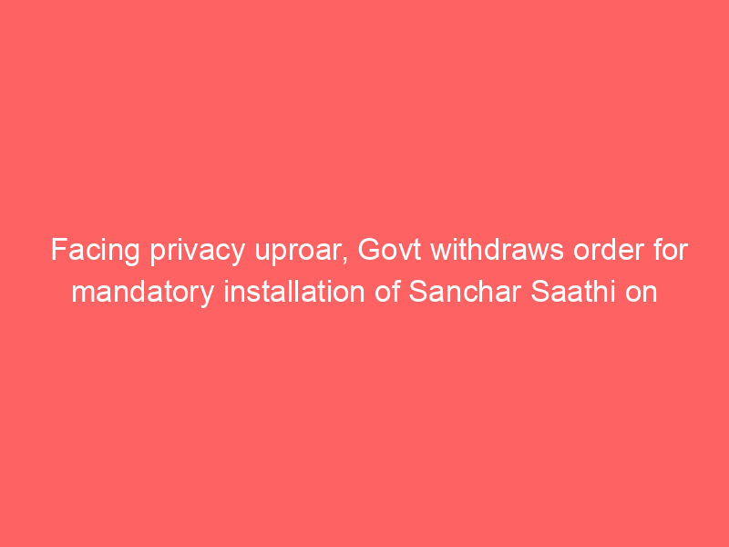 Facing privacy uproar, Govt withdraws order for mandatory installation of Sanchar Saathi on smartphones
