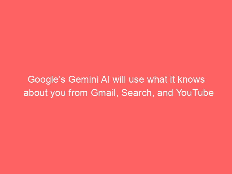 Google’s Gemini AI is getting what could prove to be a very big upgrade: To help answers from Gemini be more personalized, the company is going to let you connect the chatbot to Gmail, Google Photos, Search, and your YouTube history to provide what Google is calling “Personal Intelligence.”