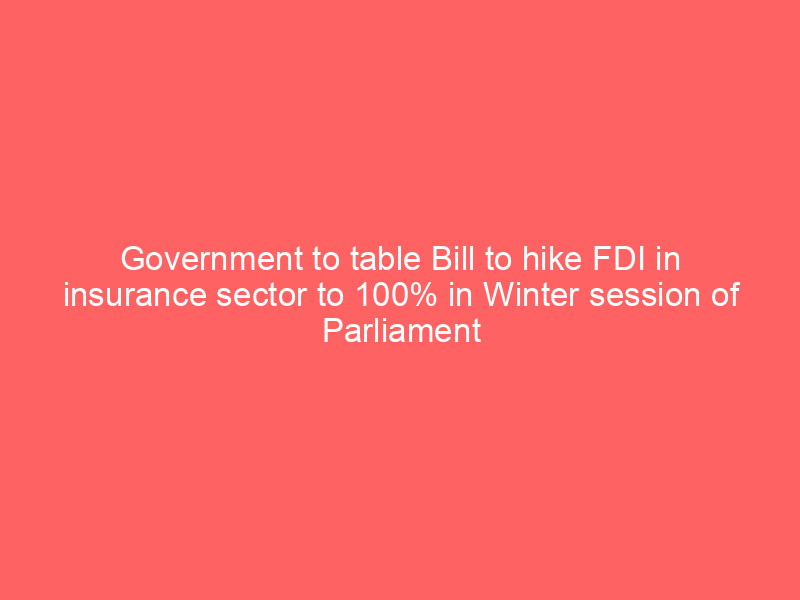 Government to table Bill to hike FDI in insurance sector to 100% in Winter session of Parliament