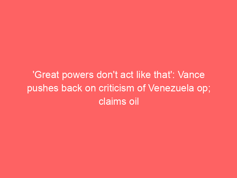 ‘Great powers don’t act like that’: Vance pushes back on criticism of Venezuela op; claims oil stolen from USUncategorized US Vice President JD Vance defended the recent military strike against Venezuela, citing the country’s alleged involvement in drug trafficking and the use of seized American oil assets to fund “narcoterrorist activities.