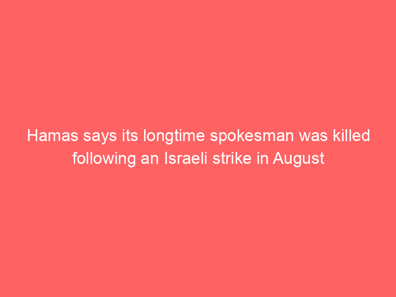 Hamas says its longtime spokesman was killed following an Israeli strike in AugustWorld Hamas has confirmed that its longtime spokesman was killed following an Israeli strike in August in war-torn Gaza