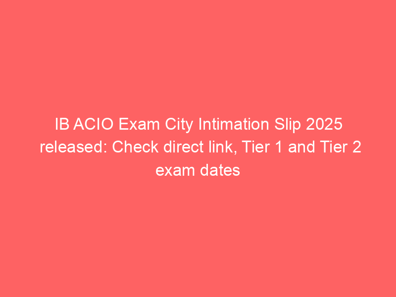 The Ministry of Home Affairs has released the IB ACIO exam city intimation slip for 2025, informing candidates of their exam city and date for both Tier 1 and Tier 2. This slip, released ahead of the admit card, allows applicants to plan travel and accommodation in advance for the exams scheduled in September 2025 and January 2026.