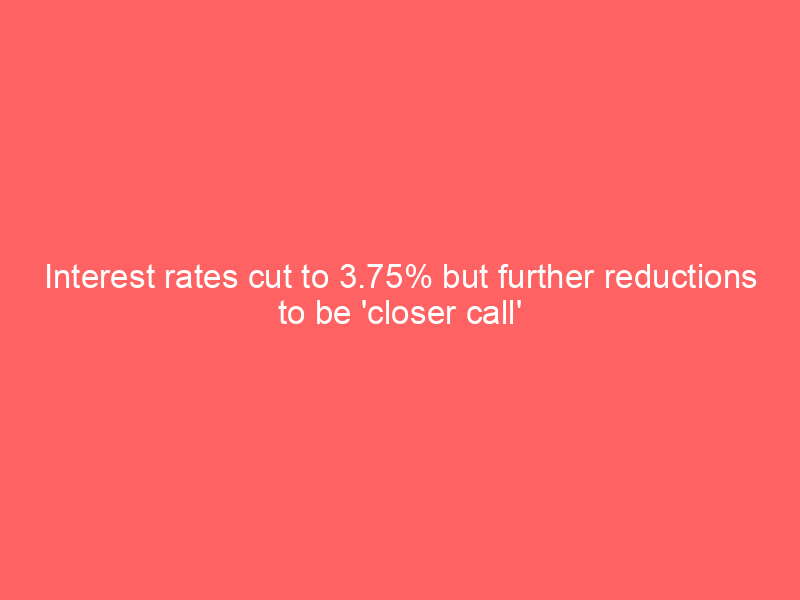 Interest rates cut to 3.75% but further reductions to be ‘closer call’
