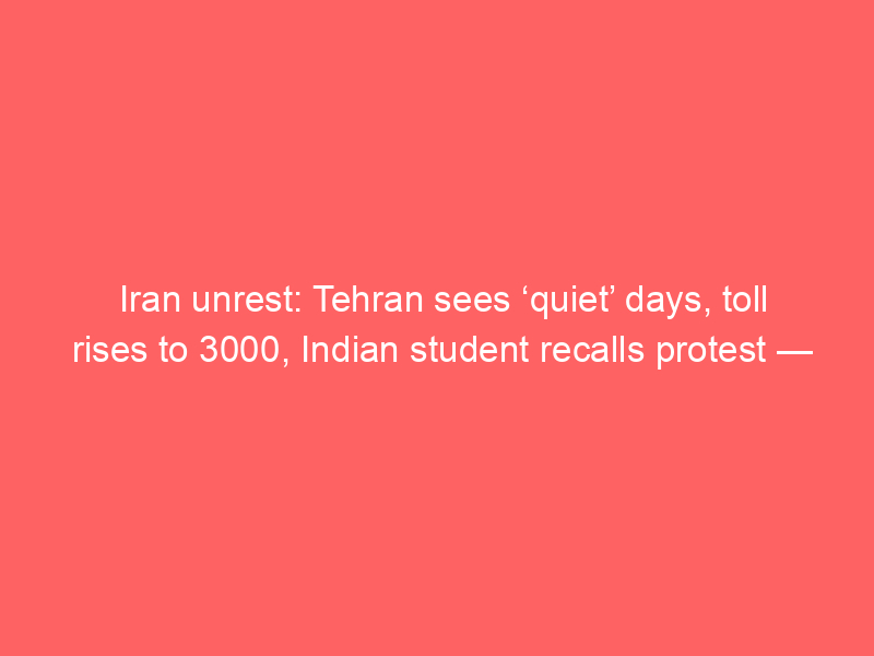 Iran unrest: Tehran sees ‘quiet’ days, toll rises to 3000, Indian student recalls protest — ‘anger visible in eyes’Uncategorized Here are all the latest updates you must know about the Iran protests: