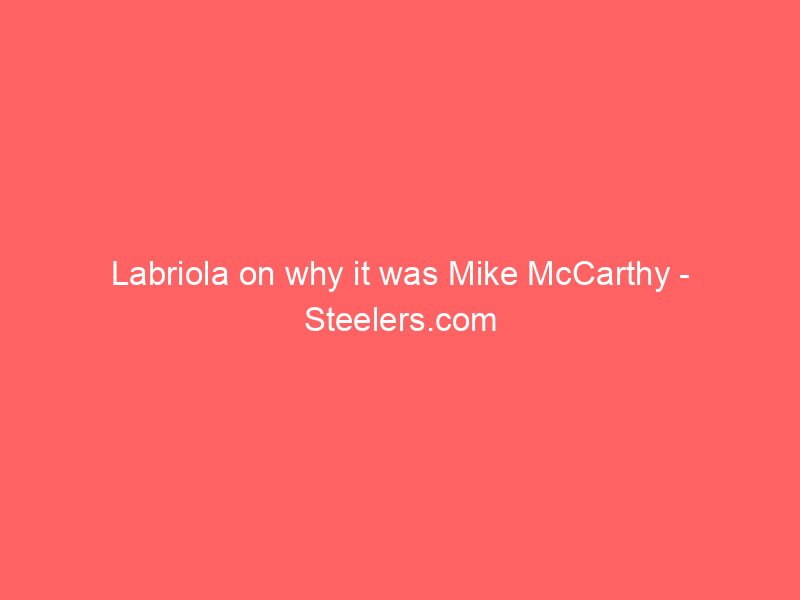 - Labriola on why it was Mike McCarthy Steelers.com