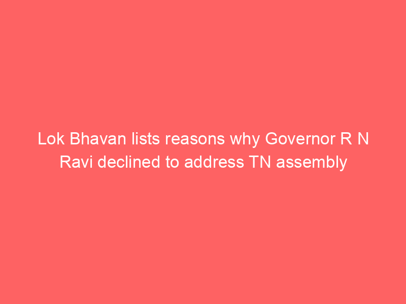 Lok Bhavan lists reasons why Governor R N Ravi declined to address TN assemblyUncategorized Lok Bhavan lists reasons why Governor R N Ravi declined to address TN assembly