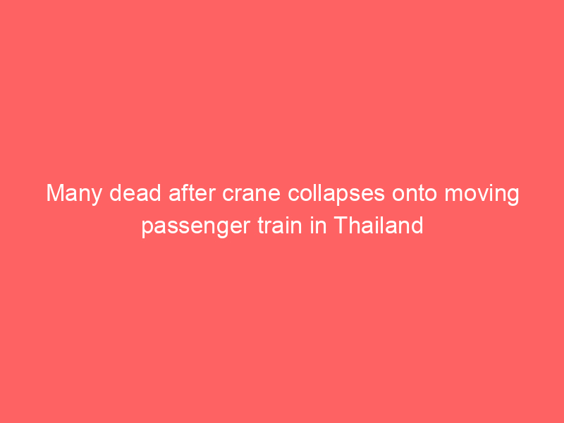 Many dead after crane collapses onto moving passenger train in ThailandUncategorized Twenty-two people were killed and more than 60 injured when the crane collapsed onto an express train carrying nearly 200 people, Thai officials said.