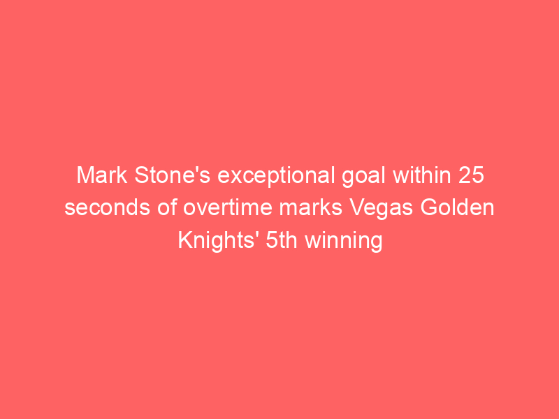 Mark Stone scored in overtime, leading the Vegas Golden Knights to a 3-2 victory over the Los Angeles Kings and extending their win streak to five games. Stone recorded a goal and an assist, while Jack Eichel contributed three assists. The match highlighted the intense competition between the two teams, which gave multiple overtime performances in the playoff standings.