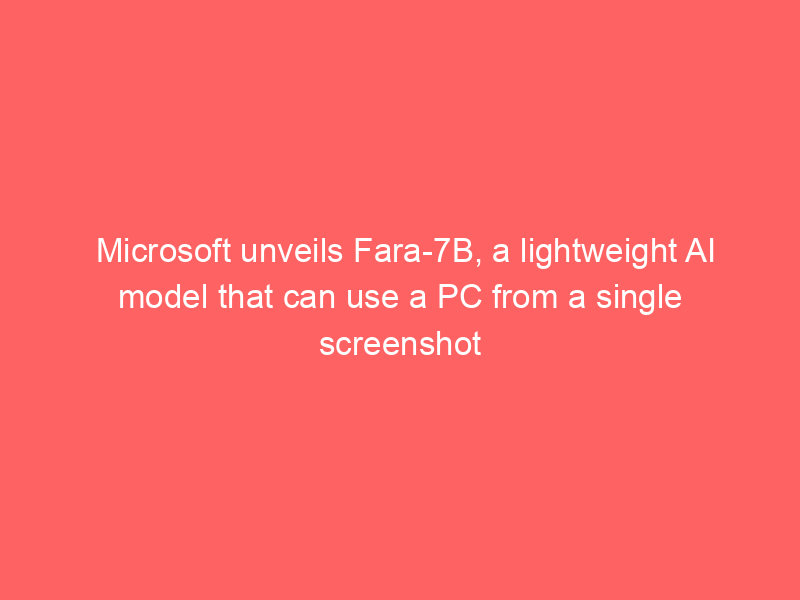 Microsoft unveils Fara-7B, a lightweight AI model that can use a PC from a single screenshotArtificial Intelligence, technology