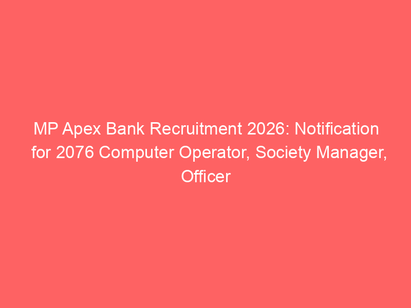 MP Apex Bank has released its official notification for 2076 vacancies, including Computer Operator, Society Manager, and Officer Grade posts across 38 District Central Cooperative Banks of Madhya Pradesh. The online application process started on January 6, 2026, and will close on February 5, 2026. Selection involves an online exam and interview. Candidates must check eligibility, post-wise vacancies, and important dates. Applications can be submitted through the official website apexbankmp.bank.in.