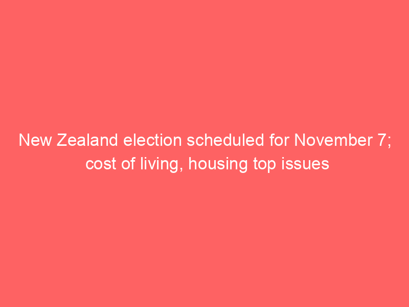New Zealand election scheduled for November 7; cost of living, housing top issuesWorld New Zealand elections are held every three years with the government selecting the exact date