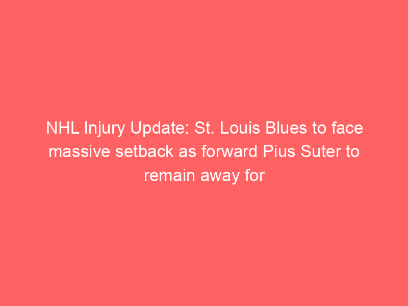 NHL Injury Update: St. Louis Blues to face massive setback as forward Pius Suter to remain away for four weeks