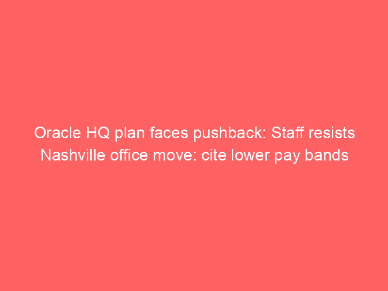 Oracle faces employee reluctance to relocate to its new Nashville ‘world HQ’ due to concerns over lower salary ceilings compared to California. Despite incentives and a futuristic campus plan, tech workers fear a pay band demotion. The company is investing heavily in Nashville, but employee numbers there remain low compared to other locations.