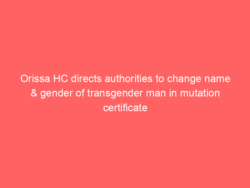 The Orissa High Court has ordered state authorities to correct the name and gender of a transgender man on a land mutation certificate. The court emphasized that once a transgender person’s identity is legally recognized, it must be reflected uniformly across all official records, ensuring their rights to property, identity, and dignity.
