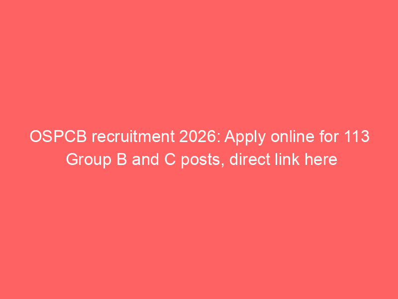 The Odisha State Pollution Control Board has announced recruitment for 113 Group B and C positions, including Assistant Environmental Engineer and Junior Accountant. Applications open online on January 20, 2026, and close on February 10, 2026. Candidates must meet educational and age criteria, with selection based on a Computer-Based Test and interview.