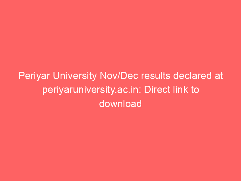 Periyar University Nov/Dec results declared at periyaruniversity.ac.in: Direct link to download scorecards here