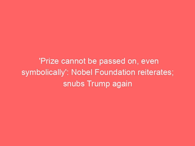 ‘Prize cannot be passed on, even symbolically’: Nobel Foundation reiterates; snubs Trump againUncategorized ‘Prize cannot be passed on, even symbolically’: Nobel Foundation reiterates; snubs Trump again
