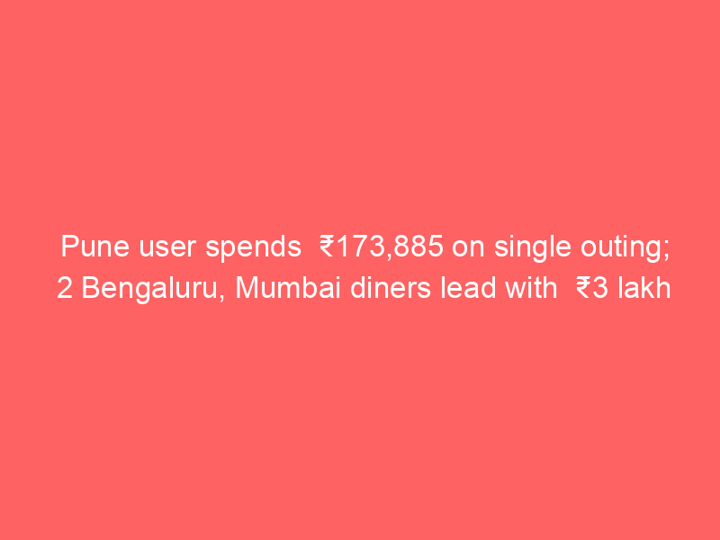 Pune user spends ₹173,885 on single outing; 2 Bengaluru, Mumbai diners lead with ₹3 lakh bills, says SwiggyUncategorized Swiggy said dining out gained popularity, and emerging markets such as Jaipur, Chandigarh, Kochi, Dehradun, Vadodara and Mangalore featured in the top 20 cities using Swiggy Dineout.