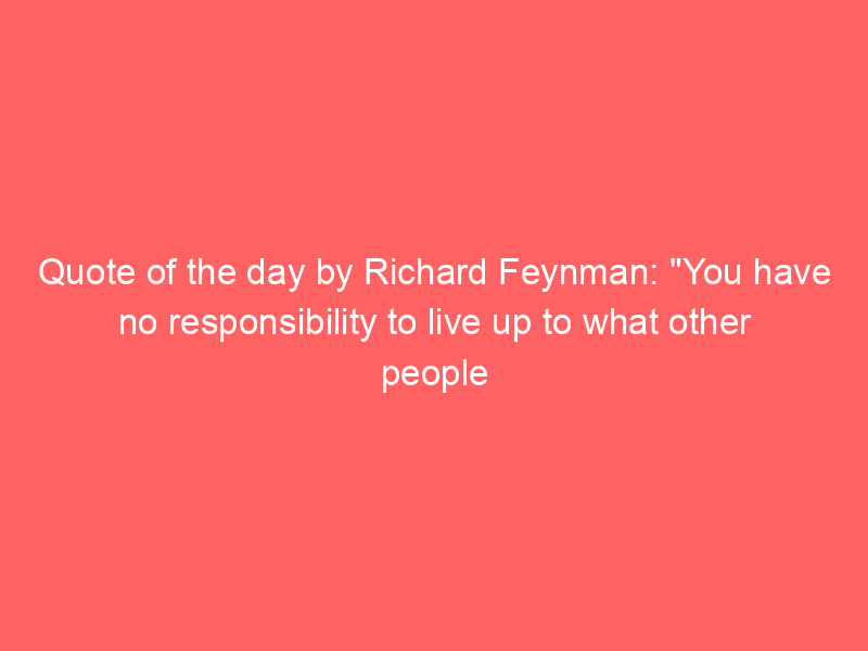 Quote of the day by Richard Feynman: “You have no responsibility to live up to what other people think you ought to accomplish.”Uncategorized Richard Feynman’s quote is about freedom from pressure. Other people will always have opinions on what you should do. But your life is not a project for their expectations. The quote reminds you to choose your own path, at your own pace.