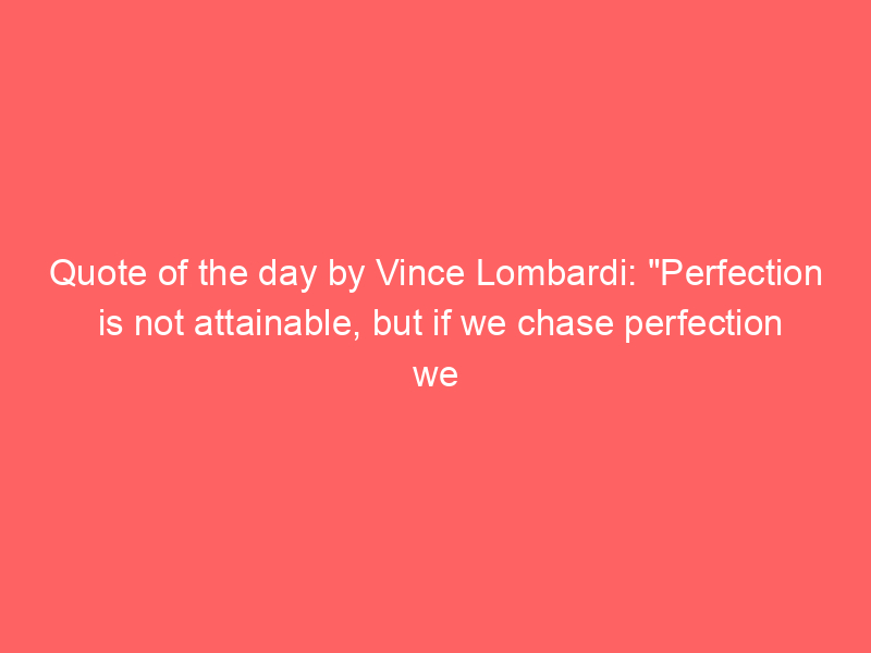 Quote of the day by Vince Lombardi: “Perfection is not attainable, but if we chase perfection we can catch excellence.”Uncategorized Vince Lombardi’s quote is about standards. You may never hit “perfect,” but aiming high can pull your work into the zone of excellence. It is a reminder to stay disciplined, keep refining, and take pride in the details.