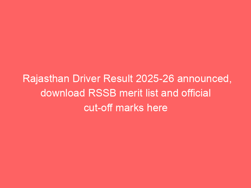 The Rajasthan Staff Selection Board has announced the Rajasthan Vehicle Driver Result 2025–26, releasing the merit list and category-wise cut-off marks on its official websites. Candidates who appeared in the written examination can now check their roll numbers and eligibility status. The result shortlists candidates for the next recruitment stage, which includes a Trade Test and Document Verification. Separate cut-offs have been declared for Scheduled and Non-Scheduled Areas across categories.