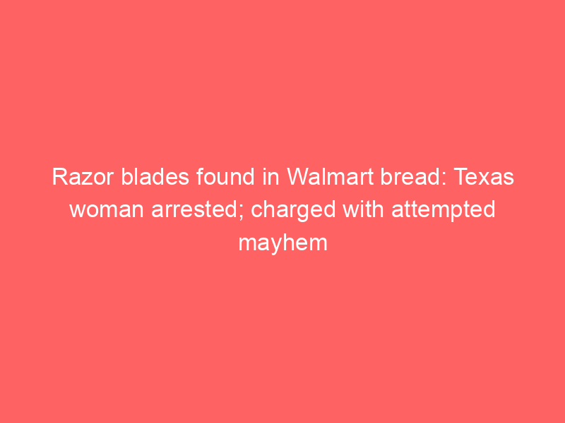 A Texas woman, Camille Benson, has been arrested and charged with attempted mayhem after allegedly placing razor blades in loaves of bread at two Biloxi, Mississippi Walmart stores. Customers reported finding the blades in bread purchased on December 5th and 8th, leading to an investigation and the removal of affected products.