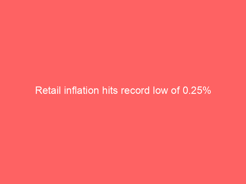 Retail inflation hits record low of 0.25%Economy Apart from food, inflation in nearly every category was higher this year than last year