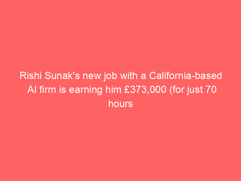 Rishi Sunak’s new job with a California-based AI firm is earning him £373,000 (for just 70 hours work) – with ex-PM donating sum to charityUncategorized The former prime minister is earning the sum as a ‘senior adviser’ at Anthropic, according to the latest register of MPs’ financial interests.