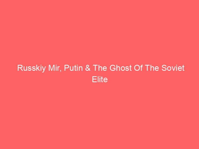 Russkiy Mir, Putin & The Ghost Of The Soviet EliteUncategorized Legacies of the past live on in Kremlin, colouring its sense of self, foreign policy choices and place in the global order
