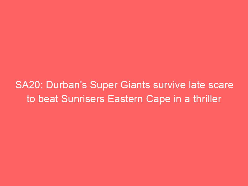 Durban’s Super Giants kept their SA20 playoff hopes alive with a thrilling two-wicket victory over Sunrisers Eastern Cape after a roller-coaster chase at St George’s Park, highlighted by Aiden Markram’s brisk start and a nerveless finish from Evan Jones.