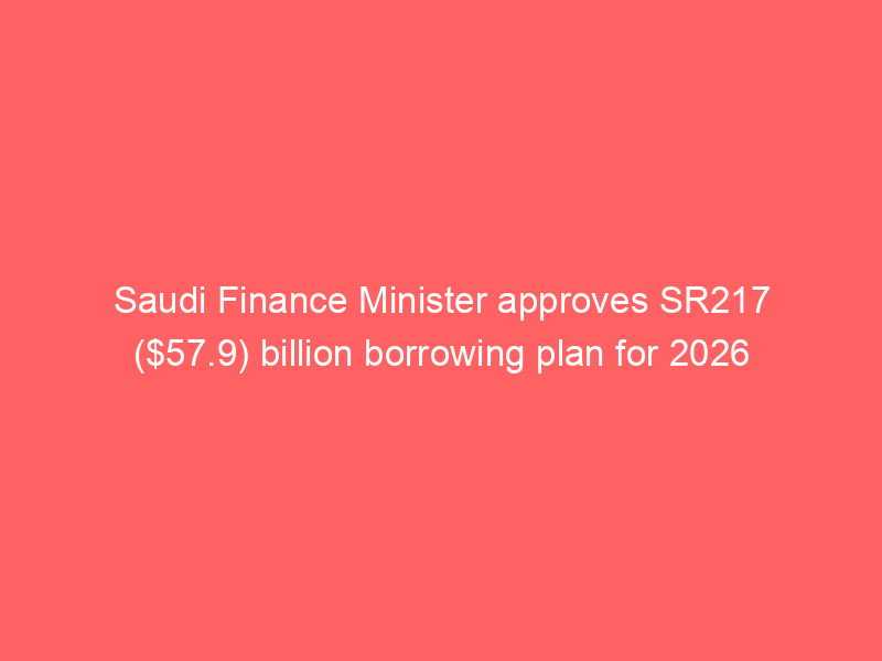 Saudi Arabia has approved a SR217 billion borrowing plan for 2026 to meet its fiscal needs. The funds will cover an anticipated budget deficit of SR165 billion and repay around SR52 billion in maturing debt. The plan focuses on maintaining debt sustainability, diversifying funding sources through bonds, sukuk, and loans, and expanding alternative financing for projects and infrastructure.