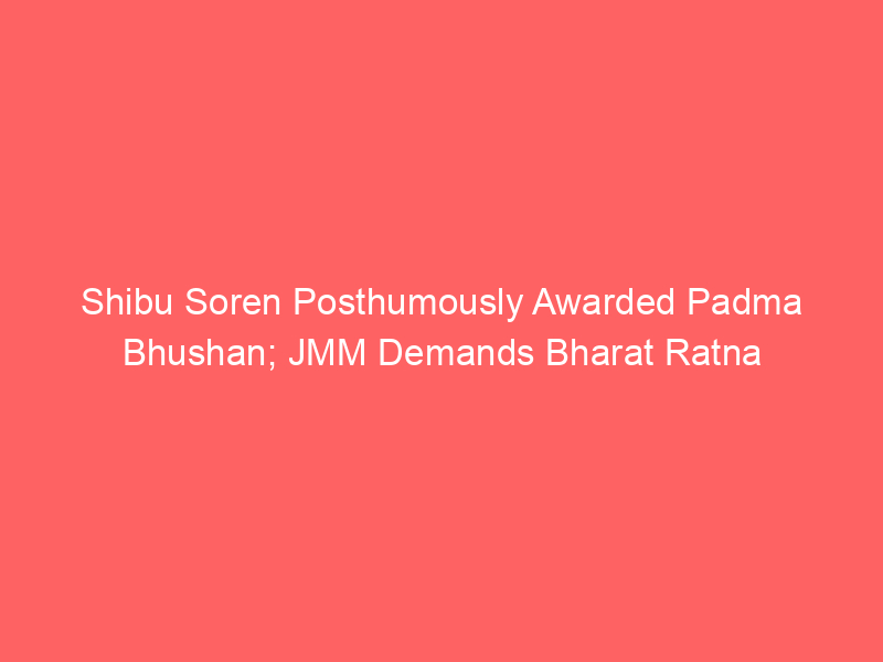 Veteran tribal leader and JMM patriarch Shibu Soren was posthumously awarded the Padma Bhushan for his contributions to public affairs. While the award was announced on Republic Day eve, the JMM and ally Congress expressed disappointment, stating Soren deserved the Bharat Ratna for his unparalleled stature and work.
