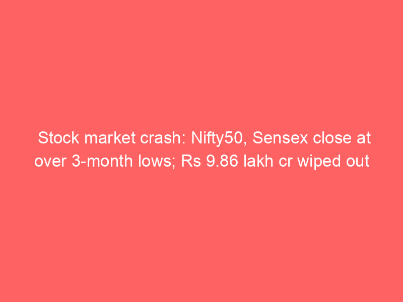 Stock market crash: Nifty50, Sensex close at over 3-month lows; Rs 9.86 lakh cr wiped outUncategorized Stock market crash: Indian equity benchmarks, Nifty50 and BSE Sensex, closed at over three-month lows after a broad selloff driven by disappointing earnings, renewed global trade risks and sustained foreign investor outflows.