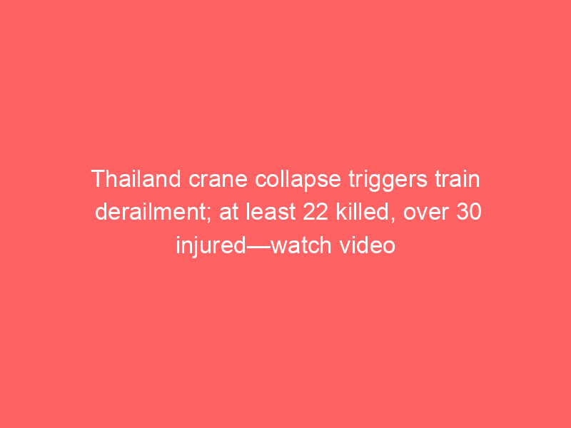 Thailand crane collapse triggers train derailment; at least 22 killed, over 30 injured—watch videoUncategorized The crane collapse in Sikhiu, Nakhon Ratchasima Province triggered a derailment of the passenger train, killing at least 22. The train was travelling from Bangkok to Ubon Ratchathani Province. Further details are awaited.