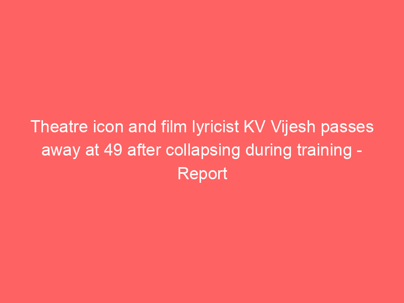 Renowned theatre activist, acting trainer, and lyricist KV Vijesh passed away at 49. He collapsed during a drama training session at Sacred Heart College, Thevara. Vijesh, known for his relatable Malayalam lyrics and contributions to films like ‘Thakarachenda’, dedicated his life to theatre, impacting many through his training initiatives and workshops.