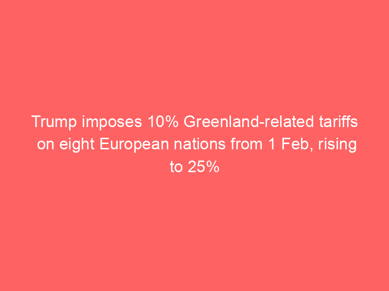 Trump imposes 10% Greenland-related tariffs on eight European nations from 1 Feb, rising to 25% from 1 JuneUncategorized Trump imposes 10% Greenland-related tariffs on European nations from Feb 1, rising to 25% from June 1: Full list